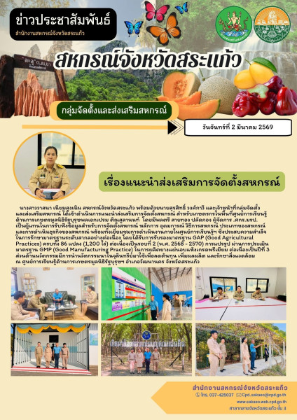 นางสาววาสนา เนียมสูงเนิน สหกรณ์จังหวัดสระแก้ว พร้อมด้วยนายสุรสิทธิ์ วงศ์กาวี และเจ้าหน้าที่กลุ่มจัดตั้งและส่งเสริมสหกรณ์ ได้เข้าดำเนินการแนะนำ ส่งเสริม การจัดตั้งสหกรณ์ สำหรับเกษตรกรในพื้นที่ศูนย์การเรียนรู้ด้านการเกษตร มูลนิธิรัฐบุรุษ พลเอกเปรม ติณสูลานนท์ โดยมีพลตรี สายทอง ปลัดกอง ผู้จัดการศกร.มรป.ซึ่งเป็นผู้แทนในการรับฟังข้อมูล สำหรับการจัดตั้งสหกรณ์ หลักการ อุดมการณ์ และวิธีการสหกรณ์ ประเภทของสหกรณ์ และการดำเนินธุรกิจของสหกรณ์ พร้อมทั้งเยี่ยมชมการดำเนินงานภายในศูนย์การเรียนรู้ฯ ซึ่งประสบความสำเร็จในการรักษามาตรฐานระดับสากลอย่างต่อเนื่อง โดยได้รับการรับรองมาตรฐาน GAP (Good Agricultural Practices) ครบทั้ง 86 แปลง (1,200 ไร่) ต่อเนื่องเป็นรอบที่ 2 (พ.ศ. 2568 - 2570) การแปรรูป ผ่านการประเมินมาตรฐาน GMP (Good Manufacturing Practice) ในการผลิตยางแผ่นอบแห้งเกรดพรีเมียม ต่อเนื่องเป็นปีที่ 3 ส่วนด้านนวัตกรรมมีการนำนวัตกรรมนาโนจุลินทรีย์มาใช้เพื่อลดต้นทุน เพิ่มผลผลิต และรักษาสิ่งแวดล้อม ณ ศูนย์การเรียนรู้ด้านการเกษตรมูลนิธิรัฐบุรุษฯ อำเภอวัฒนานคร จังหวัดสระแก้ว